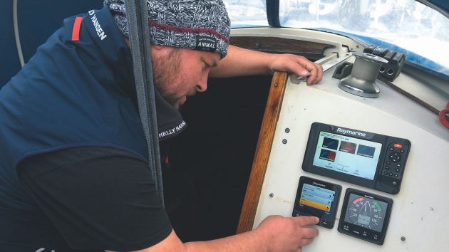 In the cockpit we had Raymarine’s i70s tri data (wind speed, boat speed and depth), the i60 wind speed/ direction instrument and the Element 7 multifunction display (MFD), which would primarily be used as a chartplotter with AIS.