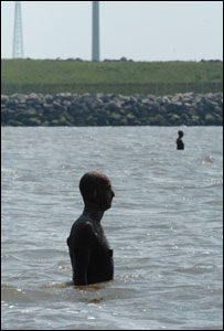 Stuck in the mud while viewing art installation off Crosby Beach near Liverpool