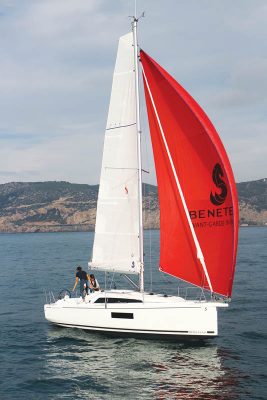 Our test boat was equipped with the standard Dacron mainsail with a square top and two reefs, plus the optional bowsprit and asymmetric spinnaker kit. A 105% slightly overlapping headsail is also offered in place of the standard self tacking jib and adds a useful 6.4sq m (69sq ft) of extra area.