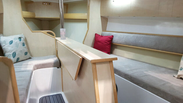 There’s still space in this Sedna 26 saloon around the keel casing. Photo: David Harding.
