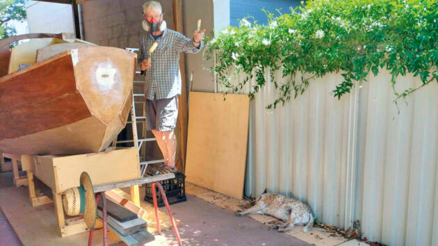 After my Australian Cattle Dog, Ozzie, had a health scar, I built a SCAMP boat, a popular dinghy cruiser design, so he could get back onto the water.
