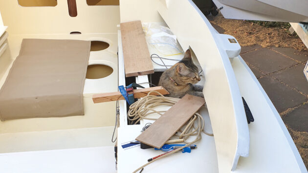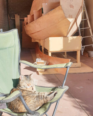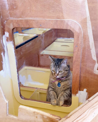 Maggie the cat found the boatbuilding extremely interesting. I had to make sure to lock her inside whenever I was epoxying to make sure I did not glue her to the structure.