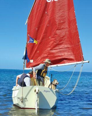 It is extremely stable, seaworthy, wonderfully manoeuvrable, comfortable, relaxing to sail, quick to rig, and low effort to get onto and out of the water. It suits the day-sailing and occasional overnighting that us old sea dogs (that’s Oz and me) like to do.
