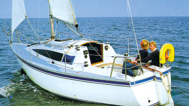 Also launched in 1994, this Groupe Finot design is an exact contemporary of the Ranger 265 and was part of a larger range of sporty, yet comfortable 21-30ft cruiser-racers that remain popular on the second-hand market. It’s a twin rudder design with a pivoting lifting keel engineered to allow the boat to dry out in a sheltered location at low water, supported by the rudders.