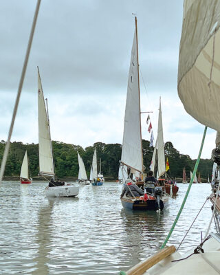 With a favourable tide and light airs the large 100-strong fleet drifts upriver to Auray. Photo: Paul Hardy.