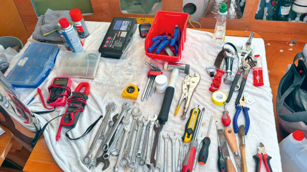 On our boat, my wife, Laura, and I generally do it all. I’ve got a tool bag on board with a selection of tools for a boat’s range of possible big maintenance jobs, plus I have a small day bag with screwdrivers, pliers, an adjustable spanner and side cutters which I use when doing little jobs.