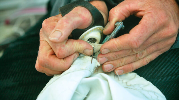 A sailmaker’s palm is an invaluable tool for sail repair. Photo: David Hancock / Alamy