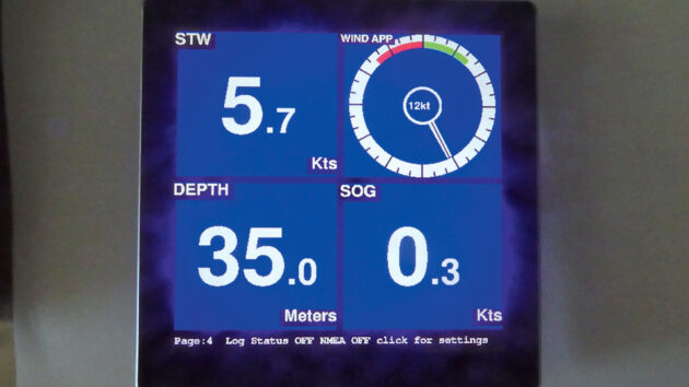 The display currently understands wind, depth, speed through water (STW) and global positioning system (GPS), course-over-ground, latitude, longitude, speed-over-ground (SOG). The standard program will initially show a four-display page with wind, STW, depth and SOG/GPS.