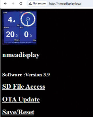 The code that programs the display is designed to work with boats that have a ‘wifi gateway’ to allow phone and tablet apps like Garmin or Navionics to see the boat’s depth or automatic identification system (AIS). The display wirelessly links to the wifi gateway access point (AP) and receives NMEA 0183 data via user datagram protocol (UDP).