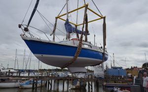 Photo: Enya being lifted out to inspect the swing keel Sailing is full of compromises and boats with swing keels are one of them. They will never be as fast or…