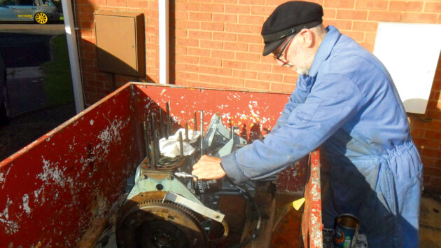 They told me that the more I stripped down myself, the less I’d be charged for dismantling, so I undressed the engine of all external paraphernalia such as starter motor, alternators, manifolds and gearbox.
