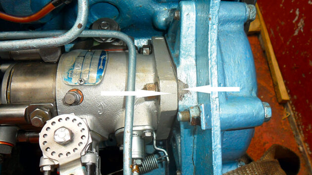 Displacement of the scribed marks shows the advance needed to correct the injection timing for internal wear in the pump. Photo: Charles Beddingfield.