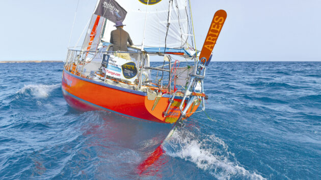 Offshore, wind vane gear can be left unattended, but inshore, you need to keep an eye out for hazards. Photo: Ocean Frontiers/OGR/GGR/CG580.