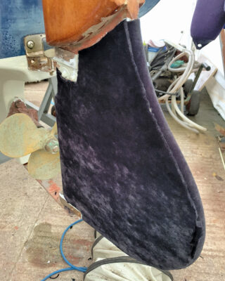 Hull preparation involves removing all previous antifouling coatings and applying a single coat of epoxy. Finsulate delivers and applies the product themselves, and then you get an eight-year warranty.