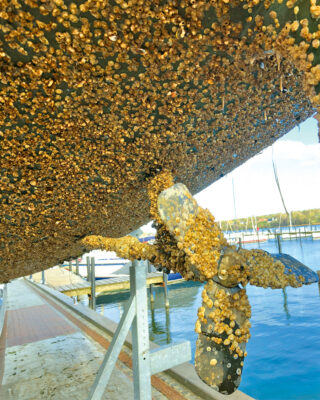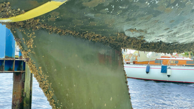 Ultrasonic antifouling is not billed as a replacement for antifouling paint, but rather as a companion that will extend the paint’s life and reduce the fouling. Photo: Sam Fortescue.