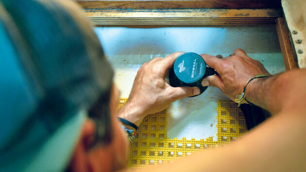 Ultrasonic antifouling emits a low-powered, pulsed ultrasonic frequency from a digital control unit, via transducers in the hull. Photo: Sam Fortescue.