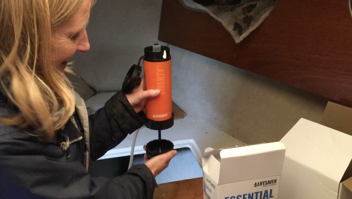 A larger version of the water filtration system is also available. The 5-litre LifeSaver Cube was originally developed in conjunction with Oxfam, and is extremely robust. Perfect for the galley, it works using the same technology as the Liberty, and as well as removing all the nasties from the water, it also takes away the tastes and smells from the treated water. I haven’t tried this one yet… but there’s still plenty of water in the pilot berth locker, the bilges and the anchor locker to drink. Yum!