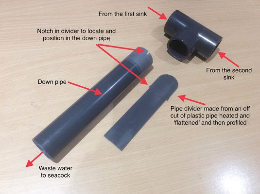 During our first season with the boat, domestic harmony was somewhat marred by a problem with the sink drain. We have a double sink and every time we pulled the plug on one side it promptly filled up the other side until eventually it all drained away.