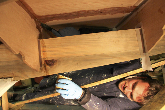 A layer of glass tape joined the two halves of the cabin bunk together, while fillets secured the frames to the keel and to each other.