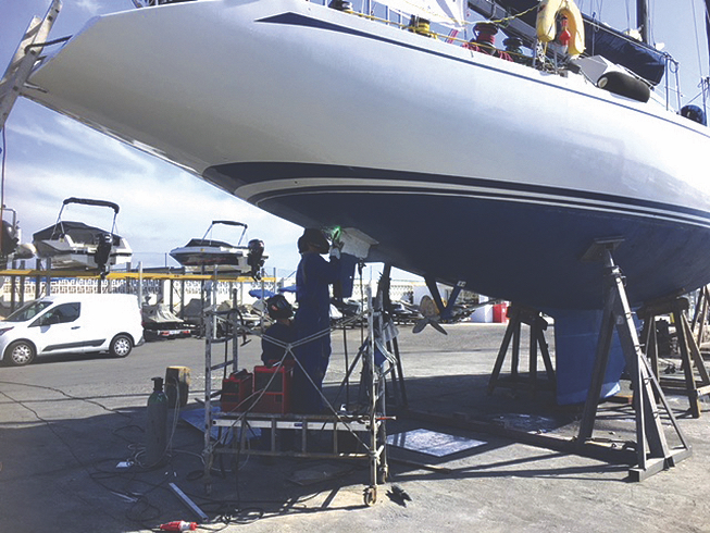 When we lifted EA out and used a grinder to take a closer look at the skeg, we saw a crack. We never believed something like this could happen because it’s such a strong boat. I asked if the yard if they knew someone who could weld it, and they said yes – there’d be someone the following day.