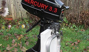 Michael Allen turns a condemned stepladder into a stand for his outboard engine