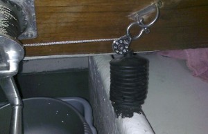 John Taylor finds a car steering rack gaiter stops leaks from the lifting cable of his swing keel