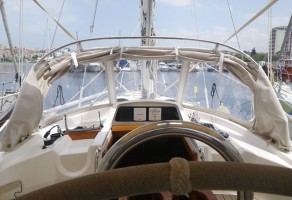Ian Bray shows how he designed his replacement sprayhood to fold down and convert to a spray-dodging windscreen