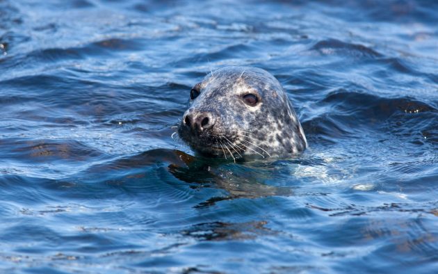 Heart thumping, I waited, treading water. There was a splash and I found myself staring into the inquisitive face of a young grey seal. It was black with grey speckles. It bobbed for a while, head out of the water, then swam around me for some time before disappearing.